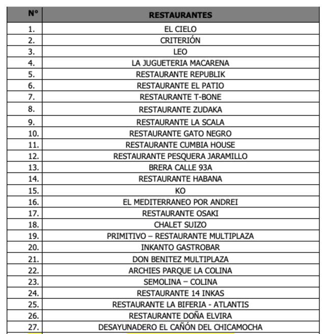 Algunos de los restaurantes a los que les dieron esta orden son: