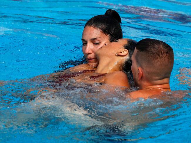 Nadadora estadunidense, Anita Álvarez, rescatada por su entrenadora. (Photo by Nikola Krstic/MB Media/Getty Images) / Nikola Krstic/MB Media