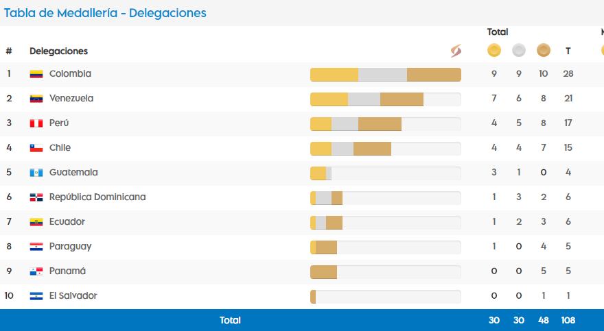 - Así está en medallero de los Juegos Bolivarianos: