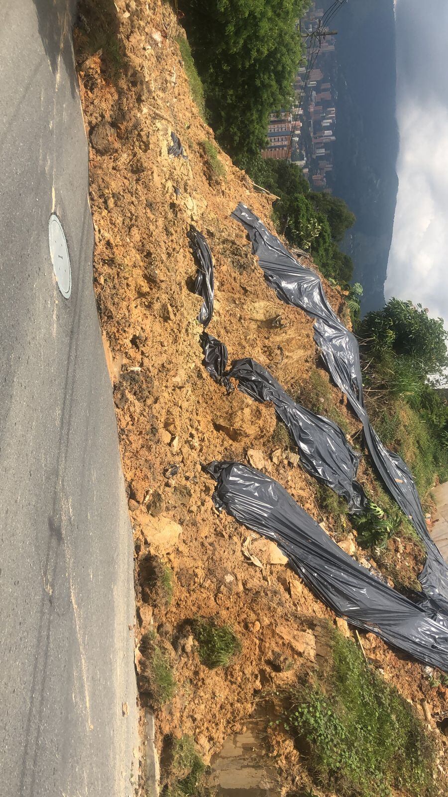 Personal del Departamento Administrativo de Gestión de Riesgo de Desastres y el Cuerpo de Bomberos de Medellín atendieron un movimiento en masa en el sector de Rodeo Alto, al suroccidente de la ciudad, en donde se registró una afectación en la vía pública debido a la caída de material.