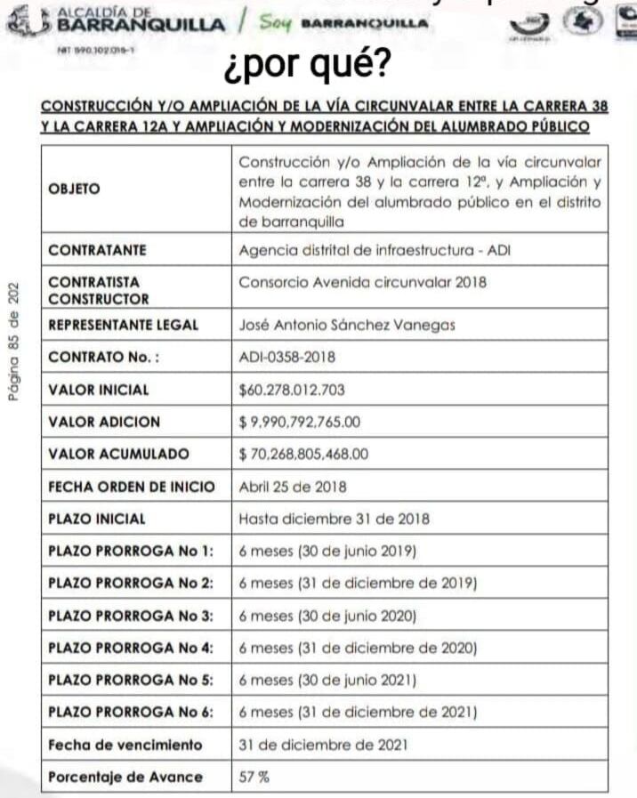“Una obra que empezó el 25 de abril de 2018 con un plazo de ejecución de 6 meses y ha tenido 6 prórrogas… Por qué una obra que supuestamente habían proyectado a 6 meses, 1 año, incluso 2 años, ¿hasta el día de hoy presenta 4 años de atrasos? y ¿Quién responde por eso? (…) la movilidad se está viendo afectada en Barranquilla porque no es solo la Circunvalar la que está reventada, sino también la calle 30 y la avenida Cordialidad, vías importantes para la ciudad”, manifestó el veedor.