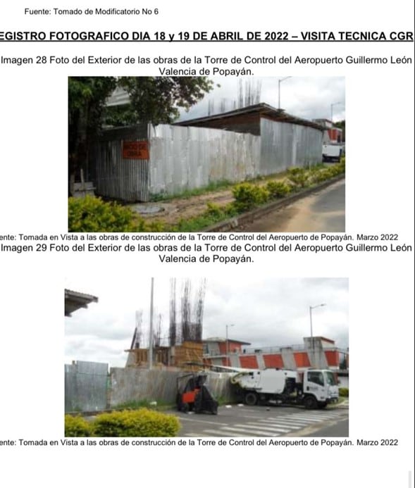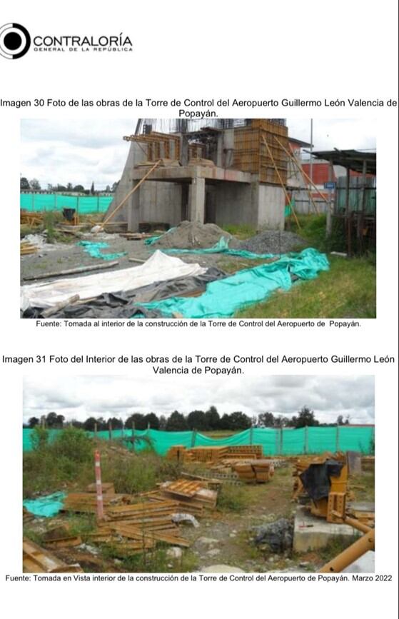 Por esa razón, a la fecha ese aeropuerto tiene obras inconclusas. Se afectó el contrato de interventoría, se presenta un incumplimiento de lo pactado, hay un riesgo de deterioro de las obras construidas. Y la torre de control hoy en día luce así (ver imagen adjunta):