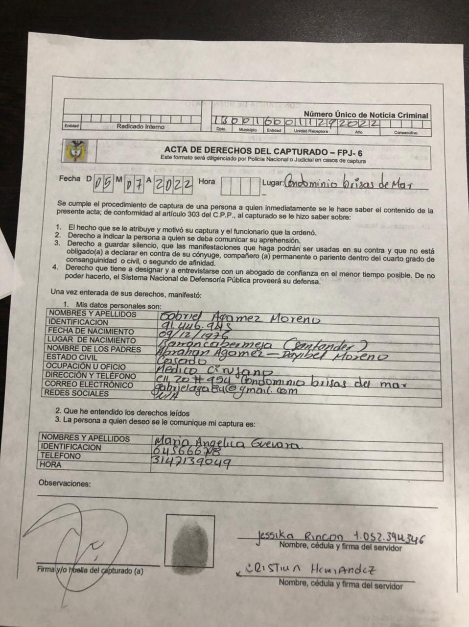 Agamez fue capturado en flagrancia por violencia intrafamiliar, le prohibieron salir del país y como medida de protección a la víctima, no puede comunicarse ni acercarse a ella.
