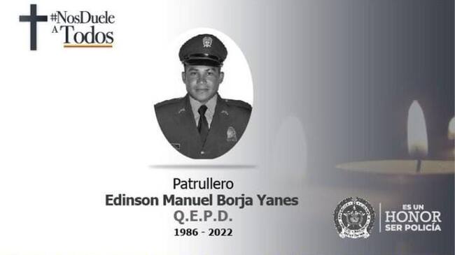 La víctima mortal fue identificado como el patrullero Edinson Manuel Borja, quien tenía 35 años, de los cuales 15 le había dedicado a la institución.