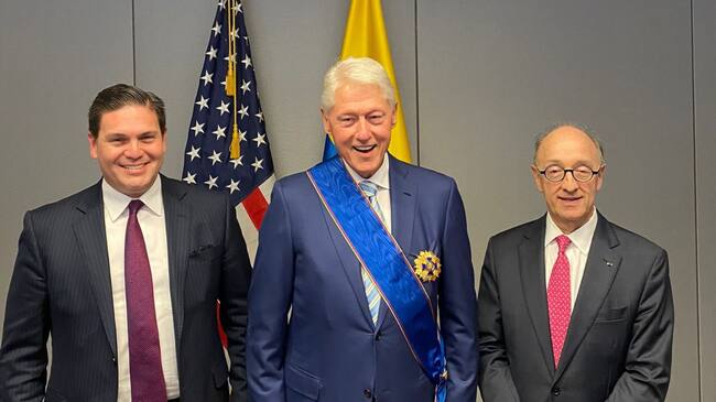 El expresidente de Estados Unidos, Bill Clinton recibió la Cruz de Boyacá desde Nueva York. Foto: @ColombiaEmbUSA