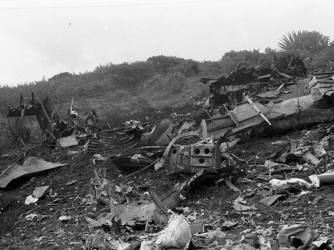 El vuelo 203 de Avianca, un Boeing 727-21, quedó destruido por una bomba sobre Soacha, Colombia, el lunes 27 de noviembre de 1989. La bomba, ordenada por el Cartel de Medellín. Foto: Archivo Colprensa