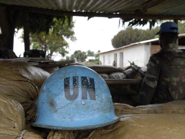 Casco de soldado de la ONU en RDC. Foto: Eddie Gerald / Getty Images / Eddie Gerald