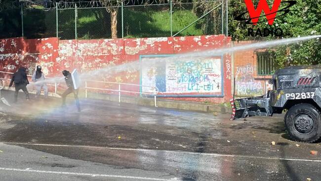 Enfrentamiento en la Universidad Distrital. Foto: W Radio
