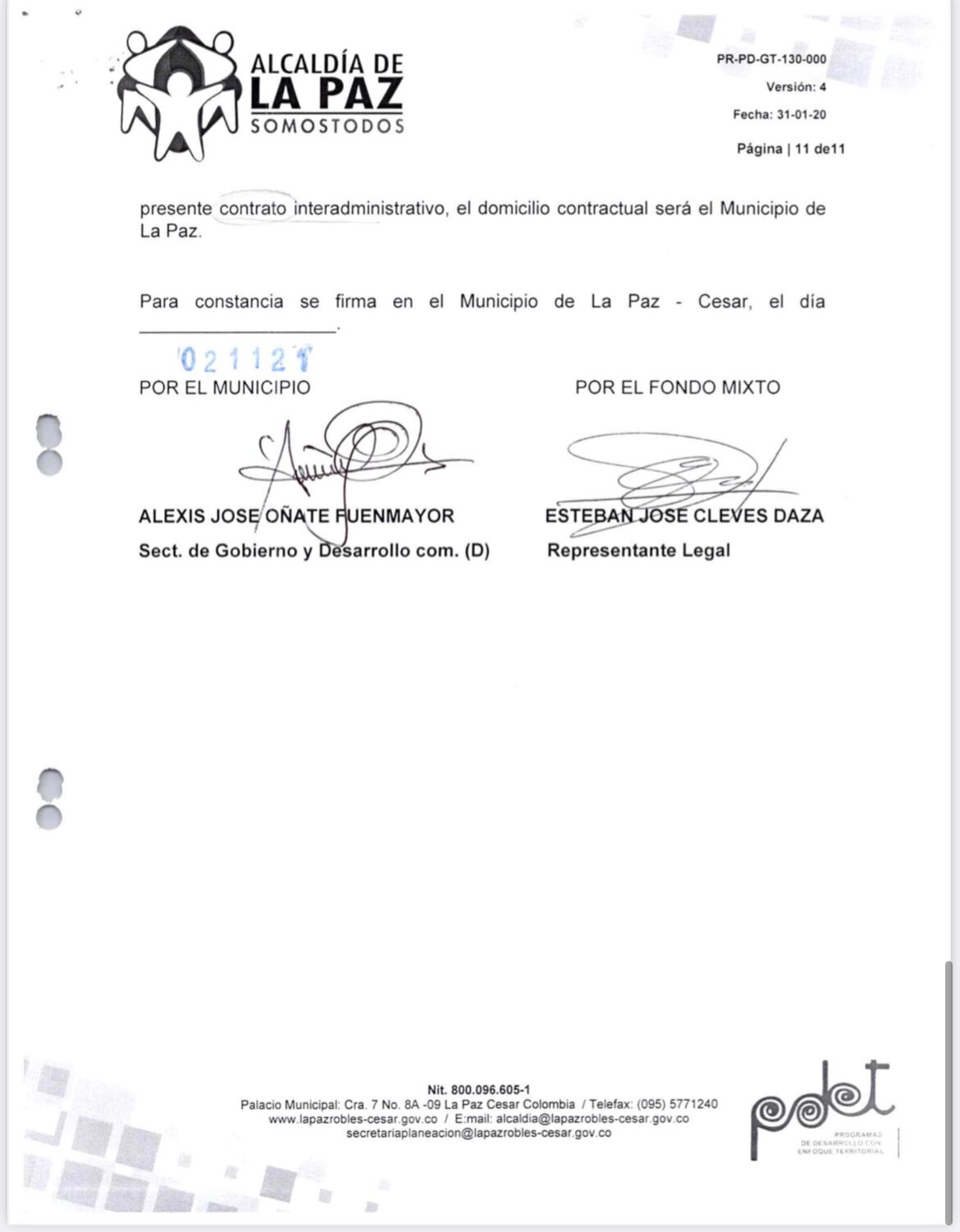 En noviembre de 2021, el alcalde del municipio de La Paz (Cesar), Martin Zuleta Mieles, quien suscribió un convenio por más de 5.800 millones de pesos con el “Fondo Mixto para la Promoción de la Infraestructura el Desarrollo Integral y la Promoción Social Sierra Nevada”, este contrato tenía como fin la pavimentación en concreto de las calles y carreras de la cabecera urbana del municipio de La Paz, en el Cesar.