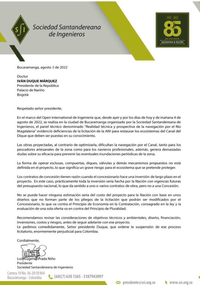 Luis Eugenio Prada Niño, presidente la SSI, dijo que, el gobierno de Iván Duque se estaba enfocando en invertir o dirigir los recursos en el Canal del Dique y no en todo el trayecto del río Magdalena.