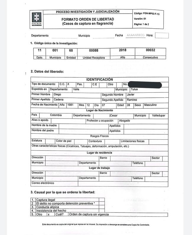 Esta emisora se comunicó con el abogado Iván Cancino, quien representa sus intereses, y este informó que se trató de un error de notificación pues Cadena se encuentra en libertad hace meses, no tiene orden de detención, ni ninguna restricción para salir de Colombia.