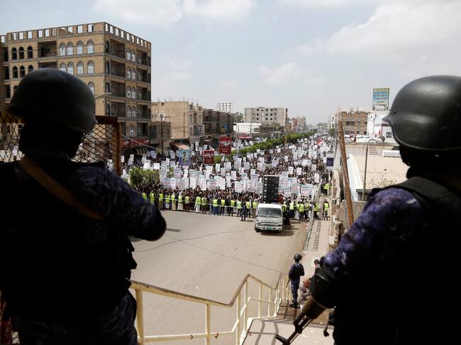 Los leales Houthi de Yemen participan en un mitin en Sana'a. (Photo by Mohammed Hamoud/Getty Images) / Mohammed Hamoud