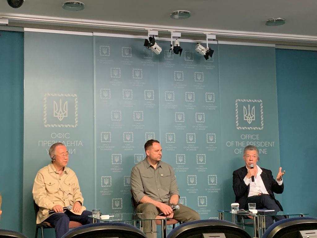 Juan Manuel Santos, expresidente de Colombia, realizó una visita a Ucrania junto a Ban Ki-moon, el exsecretario General de las Naciones Unidas. Hacen parte del grupo The Elders y uno de sus objetivos en ese país es buscar una oportunidad de diálogo.