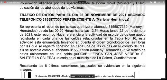 La defensa de Jhonier también presentó un peritaje sobre los registros de los celulares de las víctimas y de Leal para asegurar que la Fiscalía analizó las llamadas de manera errónea, pues el estilista estuvo en la casa (donde se comete el crimen) hasta las 11:30, pero aparecieron registros del celular de Marleny horas después.