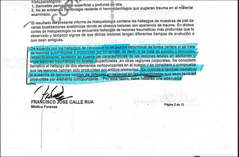 Esto reforzaría la teoría de la presencia de una tercera persona que habría podido cometer el homicidio.