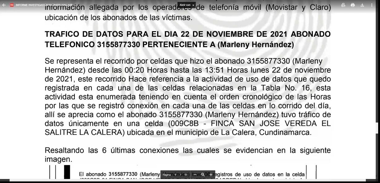 La defensa de Jhonier también presentó un peritaje sobre los registros de los celulares de las víctimas y de Leal para asegurar que la Fiscalía analizó las llamadas de manera errónea, pues el estilista estuvo en la casa (donde se comete el crimen) hasta las 11:30, pero aparecieron registros del celular de Marleny horas después.