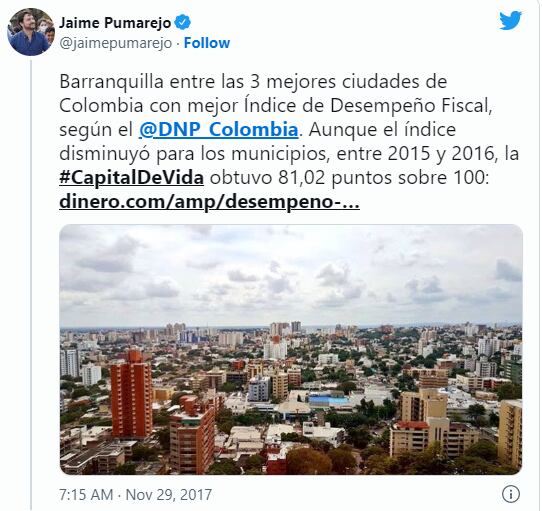 Pantallazo tuit de Jaime Pumarejo.