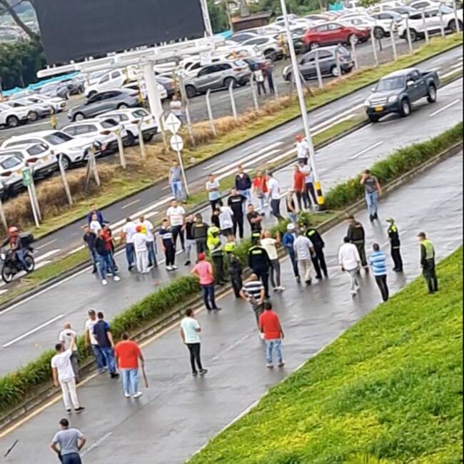 La disputa inició con el cierre que, al parecer, realizaron algunos conductores informales al ingreso y salida de taxis del AeroMatecaña.