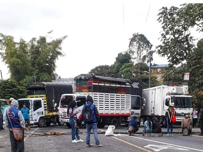 Juventudes indígenas bloquean la vía Panamericana en el corregimiento de Pescador, Caldono, Cauca. Protestan por el accionar de grupos armados que asesinaron a tres adolescentes que pertenecían al resguardo de San Lorenzo.