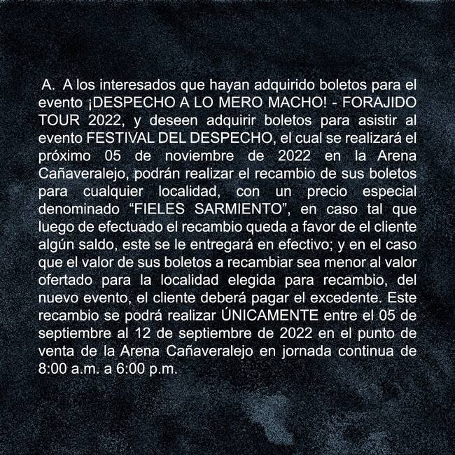 Por lo tanto, los conciertos anunciados para el 8 de septiembre en Bucaramanga en el marco de los 400 años de la ciudad, y en Cali para el festival “Despecho a lo mero macho”, jamás debieron promocionar a Christian Nodal como uno de los artistas invitados.
