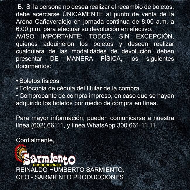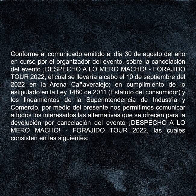 Colboletos anunció la devolución del dinero para el evento en Cali y ofreció diferentes alternativas. A continuación un comunicado sobe la situación.