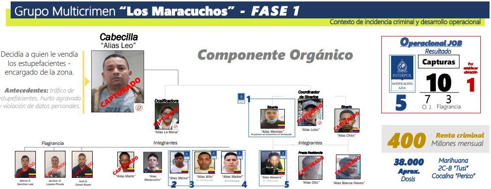 Siete integrantes fueron capturados por orden judicial, tres en flagrancia, en los más de 9 allanamientos durante el fin de semana. Además, se logró la captura de su principal cabecilla, un colombiano conocido como alias ‘Leo’.