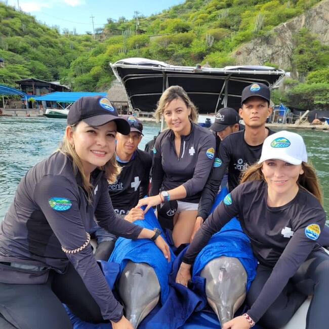 Dos delfines costeros de la especie Sotalia guianensis (1 hembra adulta y 1 macho juvenil), los cuales, el pasado 25 de agosto fueron avistados con dificultades en medio del mar por pescadores del área de Don Diego en Santa Marta, fueron liberados por parte de personal de CORPAMAG y el acuario de El Rodadero.