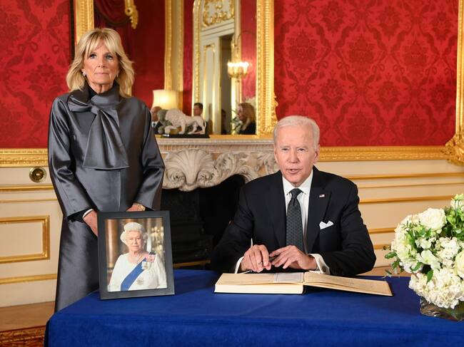 Biden y su esposa llegaron el sábado a la capital británica donde mañana asistirán al funeral de Estado en la abadía de Westminster, en Londres.
