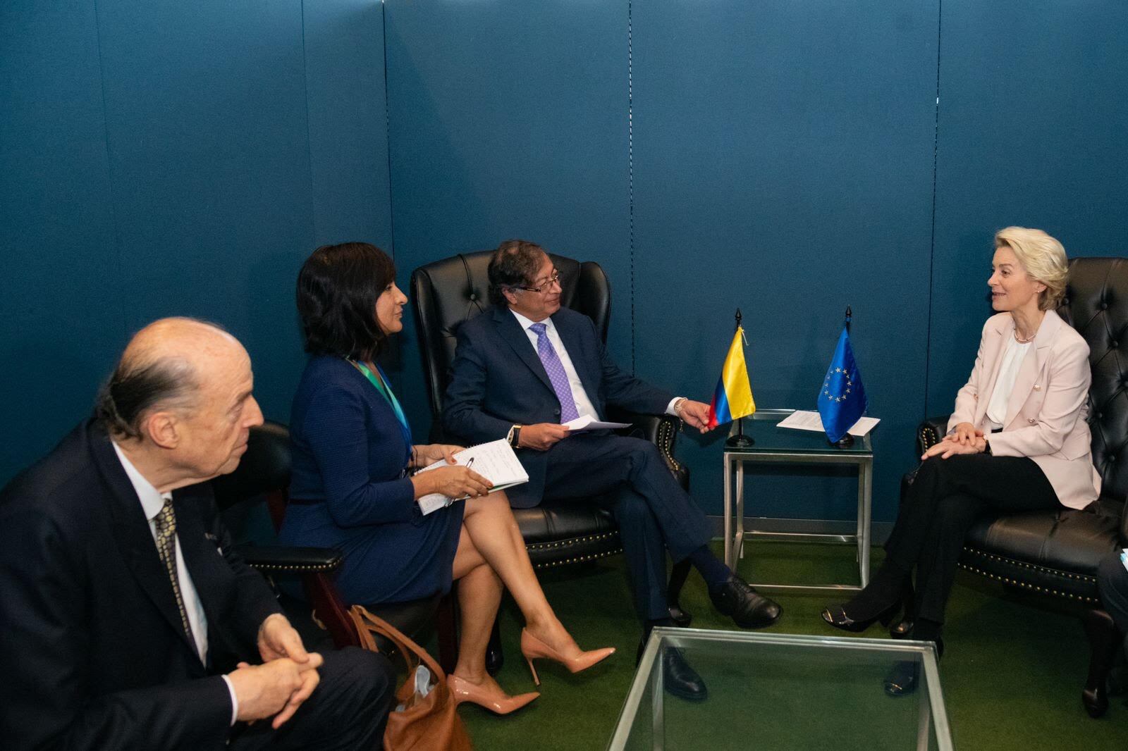 De igual forma, el presidente Petro tuvo un encuentro bilateral con Ursula von der Leyen, presidente de la Comisión Europea. En el encuentro, Colombia agradeció el compromiso y apoyo recibido por parte de la UE a la paz total de nuestro país. De igual forma, abordaron temas como la lucha contra las drogas y cooperación.