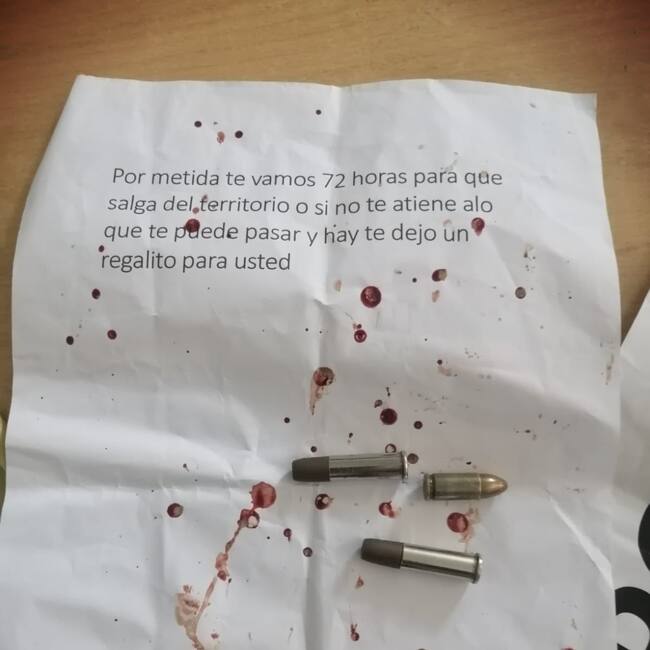 De acuerdo con la información conocida, en la madrugada del miércoles 21 de septiembre, en su vivienda fueron dejados dos documentos con mensajes amenazantes, en los que, además, se le exige que abandone el territorio. Junto a los papeles, también fueron halladas tres balas.