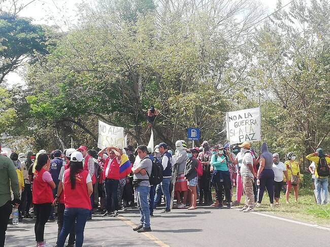 Al sitio, llegaron cerca de mil uniformados entre Policía y Esmad, para afrontar los ataques que con bombas molotov, caucheras y armados con machetes y palos, los invasores intentaron evitar que la fuerza pública ingresara. Durante la tensa jornada, se pudo evidenciar que la comunidad cortó árboles y pusieron piedras de gran tamaño tapando la vía, aún así, el ingreso de despeje fue inminente.