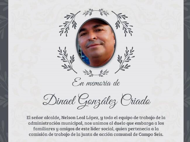 La Alcaldía del municipio de Tibú rechazó el asesinato del líder comunal Dinael González Criado, quien hizo parte de la JAC de la vereda Campo Seis.