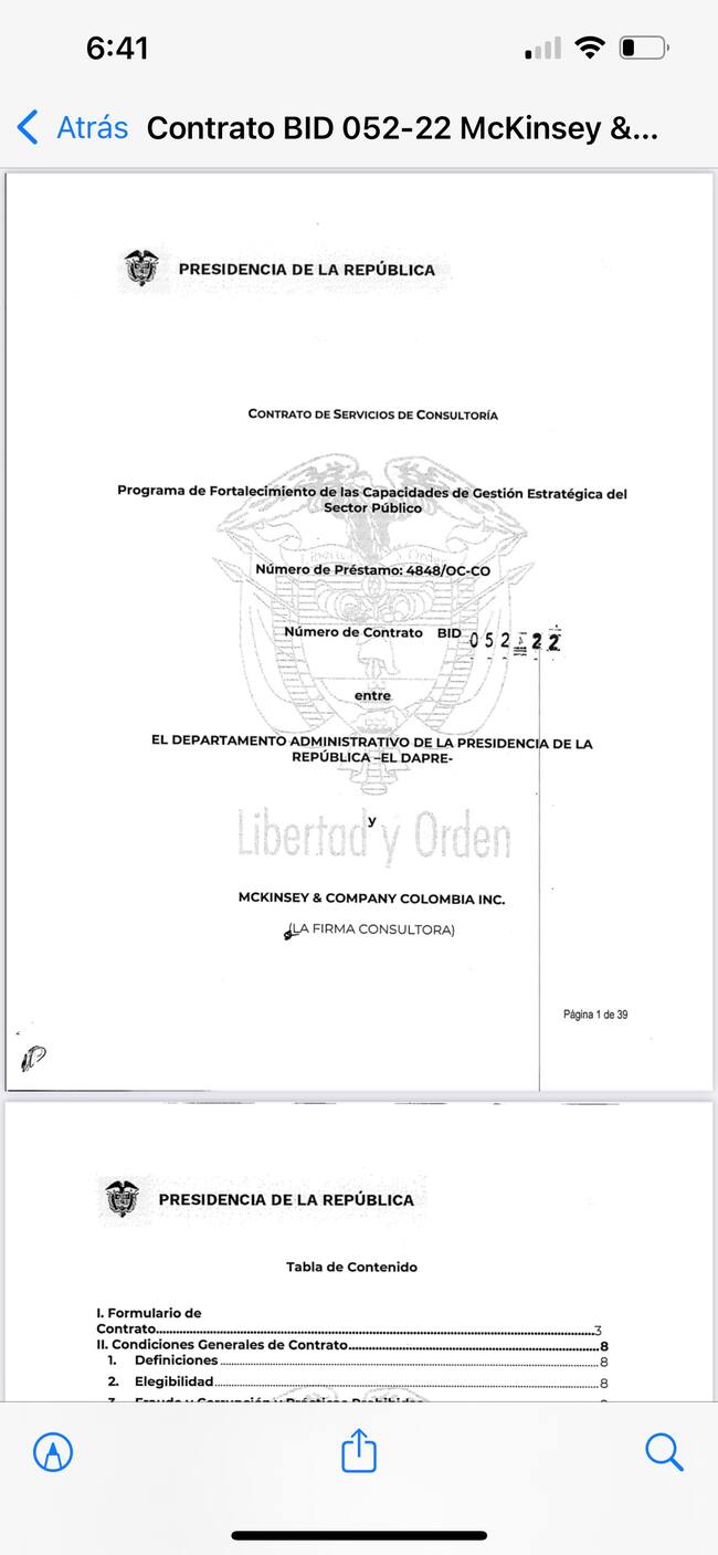 En la justificación del contrato también se puede leer, “ante la iniciativa del nuevo Gobierno Nacional frente a qué Colombia sea la potencia mundial de la vida, mediante un pacto histórico construido desde los territorios, se pretende desarrollar una revisión de pilares estratégicos que constituya la planeación de las prioridades de gobierno necesarias para desarrollar las transiciones, que lleven al país hacia la consolidación del pacto histórico”.