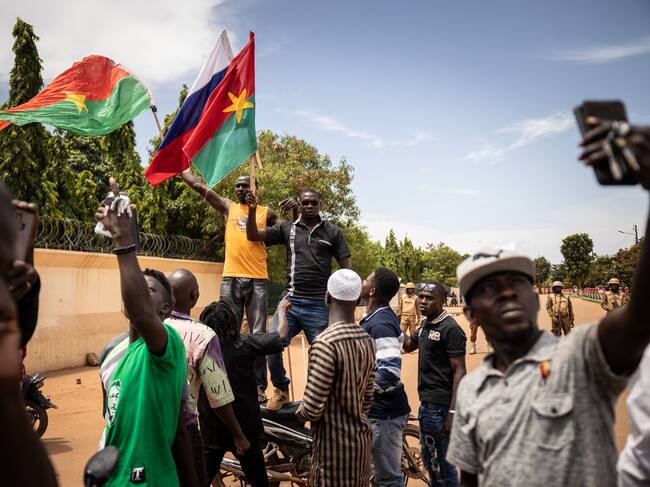 En el centro de la capital, Efe pudo ver a ciudadanos aplaudiendo a los soldados que custodiaban ciertas calles, así como a manifestantes que portaban banderas rusas (mercenarios rusos ayudan al vecino Mali en la lucha antiyihadista) y pedían a los militares sublevados el derrocamiento de Damiba.