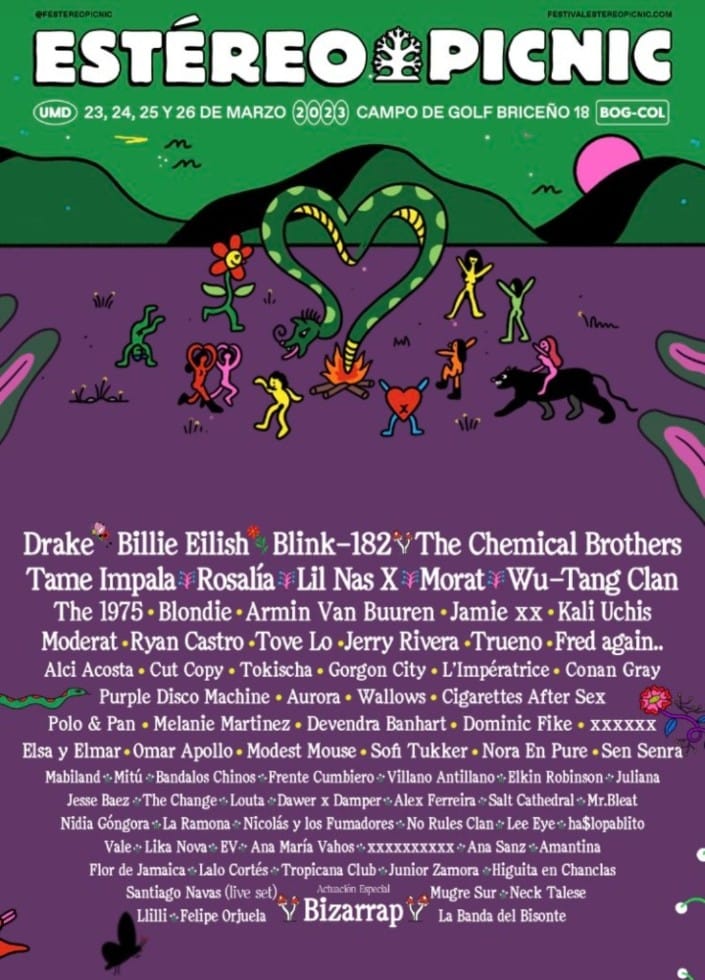 El 23, 24, 25 y 26 de marzo del 2023, los asistentes podrán disfrutar de los artistas que fueron anunciados por el Festival Estéreo Picnic. Este evento se llevará a cabo en el Campo de Golf Briceño.