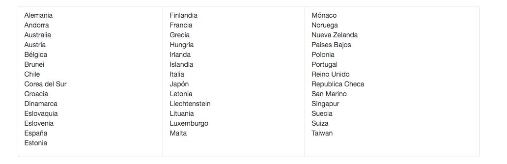 Países que no necesitan Visa para el ingreso a los Estados Unidos