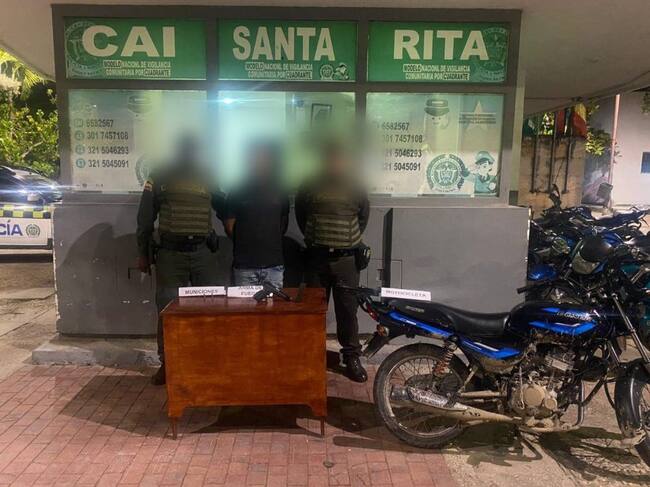 Durante la captura, a este sujeto el fueron incautados una motocicleta marca Bajaj bóxer de color negro y un arma de fuego industrial calibre 9mm con tres cartuchos. El rolex no fue recuperado.