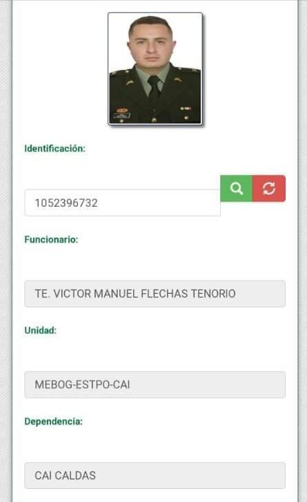 De acuerdo con la investigación, se trata del teniente Víctor Manuel Flechas, comandante del CAI Caldas, quien estaba al servicio de la organización criminal y hacía parte de su nómina al entregar información de movimientos de las autoridades a cambio de dádivas que iban entre un millón y dos millones de pesos semanales.