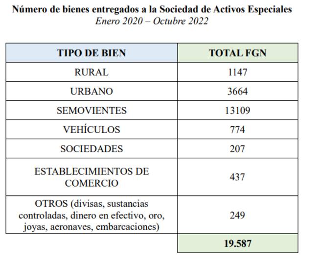Sin embargo, a la SAE le fueron entregados entre enero de 2020 y octubre 6 de 2022, un total de 19.587 bienes.