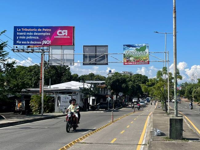 El mensaje es concreto: “La tributaria de Petro traerá desempleo y pobreza”, y ha sido ubicado estratégicamente en varias zonas. En la mayoría de las ciudades el promedio de vallas instaladas es de dos a tres y en Bogotá hay cinco.