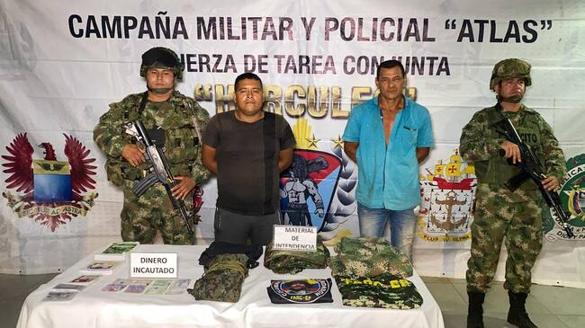 Asimismo, el Ejército mencionó que estos sujetos se movilizaban en una camioneta que, al ser verificada en su interior, le fueron halladas prendas de uso privativo de la fuerza pública, así como dinero en efectivo, cartillas de adoctrinamiento de las Farc e implementos con los logos del grupo armado organizado residual Urias Rondón.