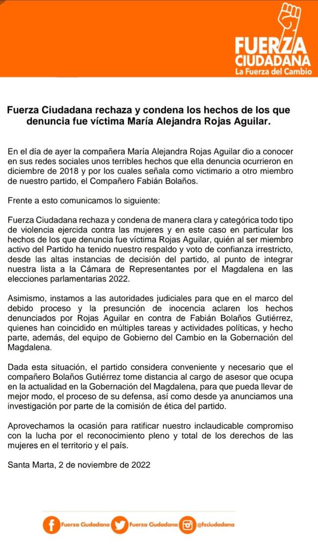 Lea continuación el comunicado emitido por el Movimiento Fuerza Ciudadana
