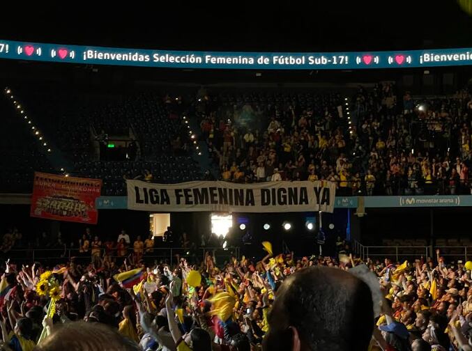 La Selección Colombia ya está de regreso en el país tras el subcampeonato conseguido en el Mundial Sub-17 Femenino de la India. La Tricolor fue recibida en el Movistar Arena, donde miles de personas asistieron a un homenaje en el que varios aficionados llevaron carteles para exigir mejores condiciones en el fútbol femenino.
