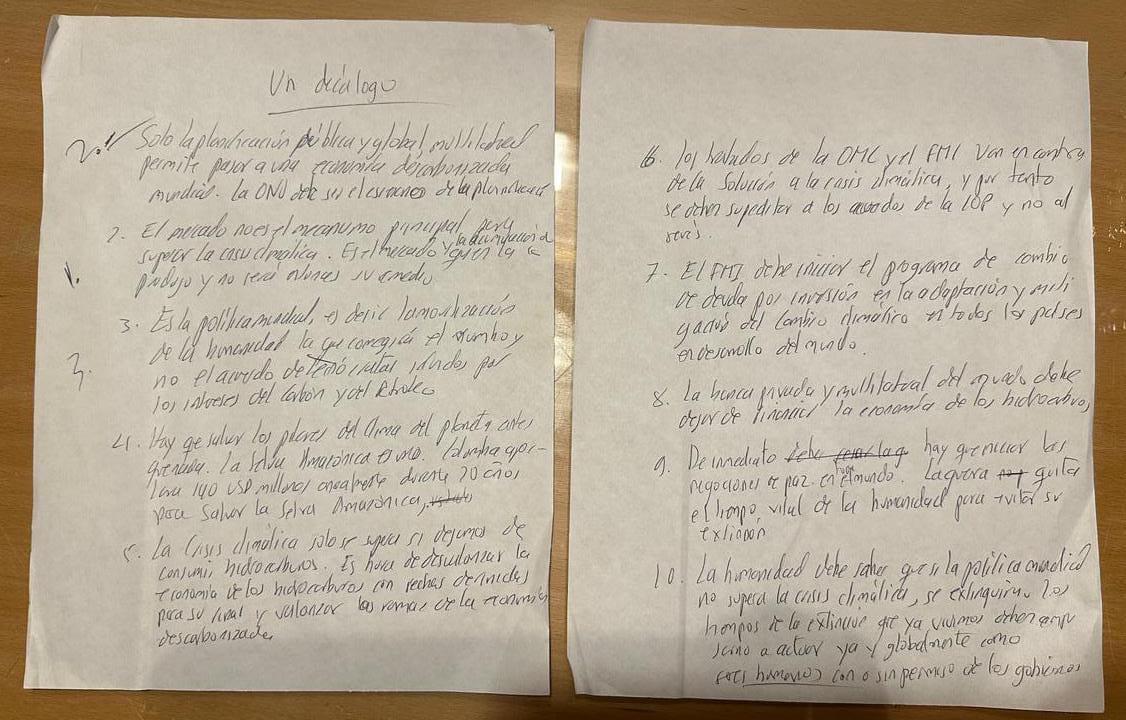 • Solo es la planificación pública y global, multilateral, la que permite pasar a una economía descarbonizada mundial. La ONU debe ser el escenario de la planificación”.