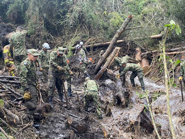 Aproximadamente son 30 hombres del Ejército Nacional realizan remoción de escombros y búsqueda de una persona que estaría desaparecida.