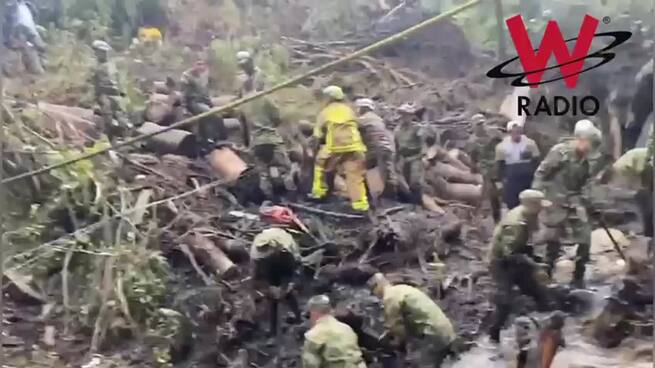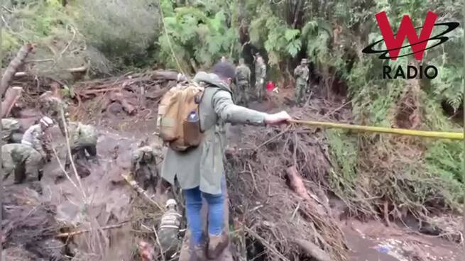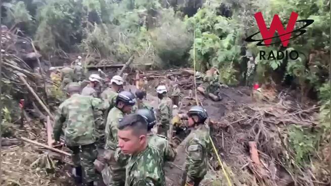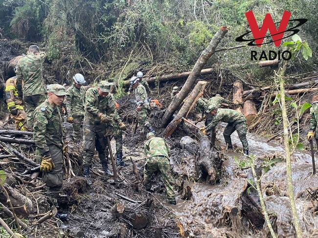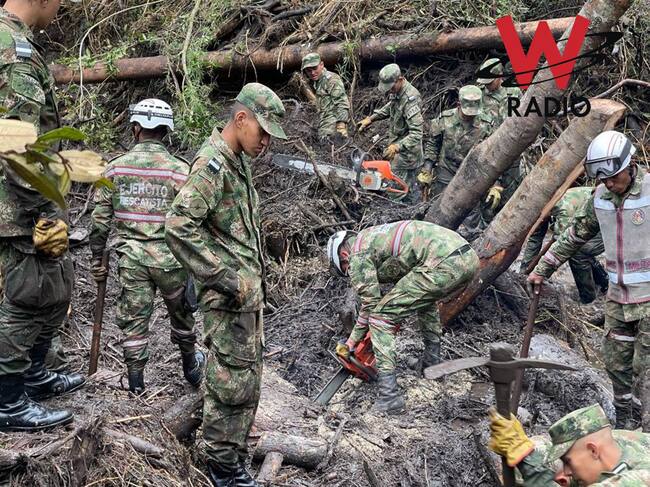 La W acompaña al pelotón de la brigada de Atención y Desastres del Ejército que realizan remoción de escombros y búsqueda de una persona que estaría desaparecida.