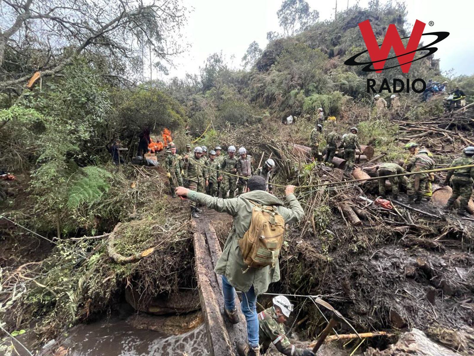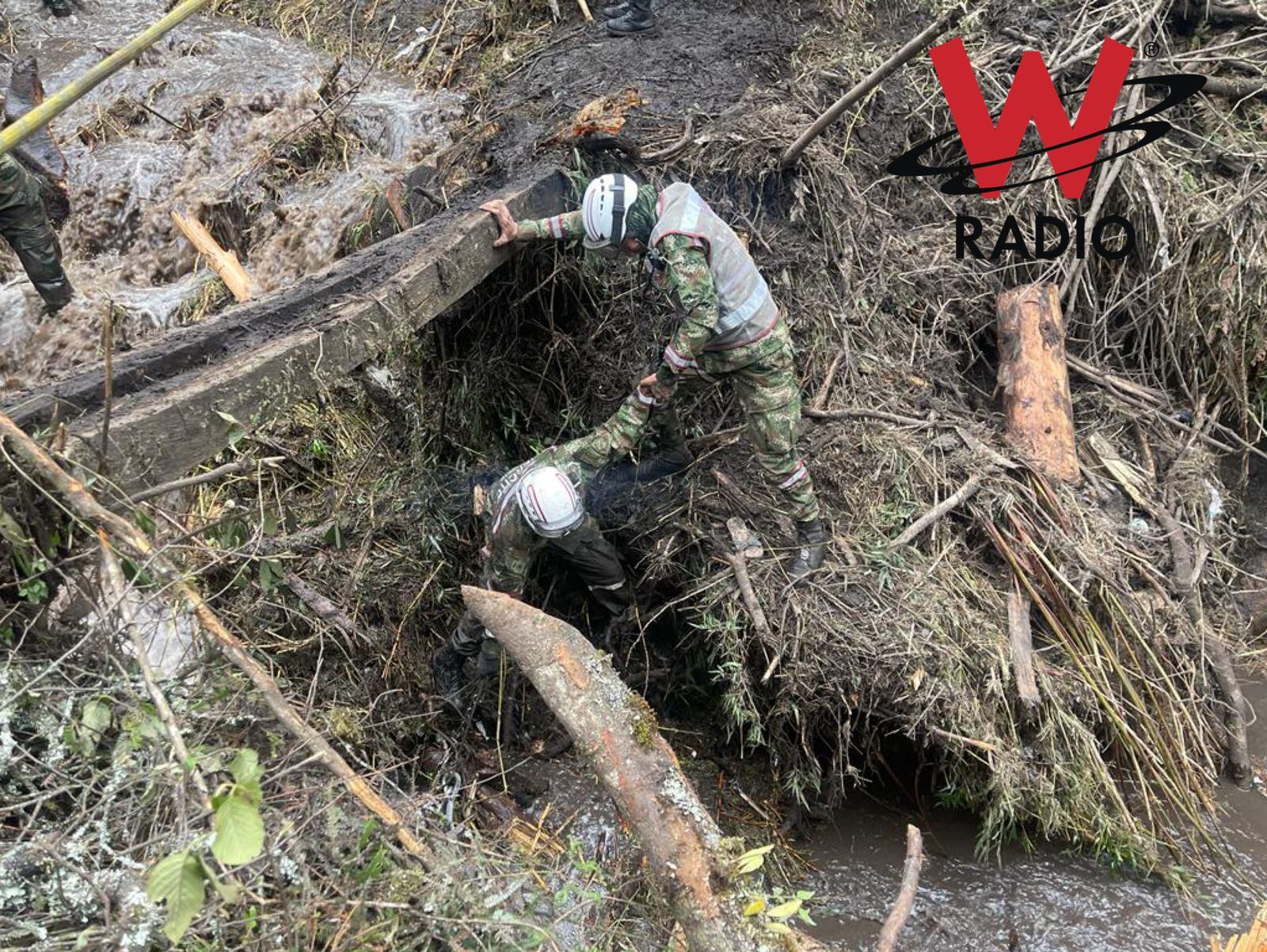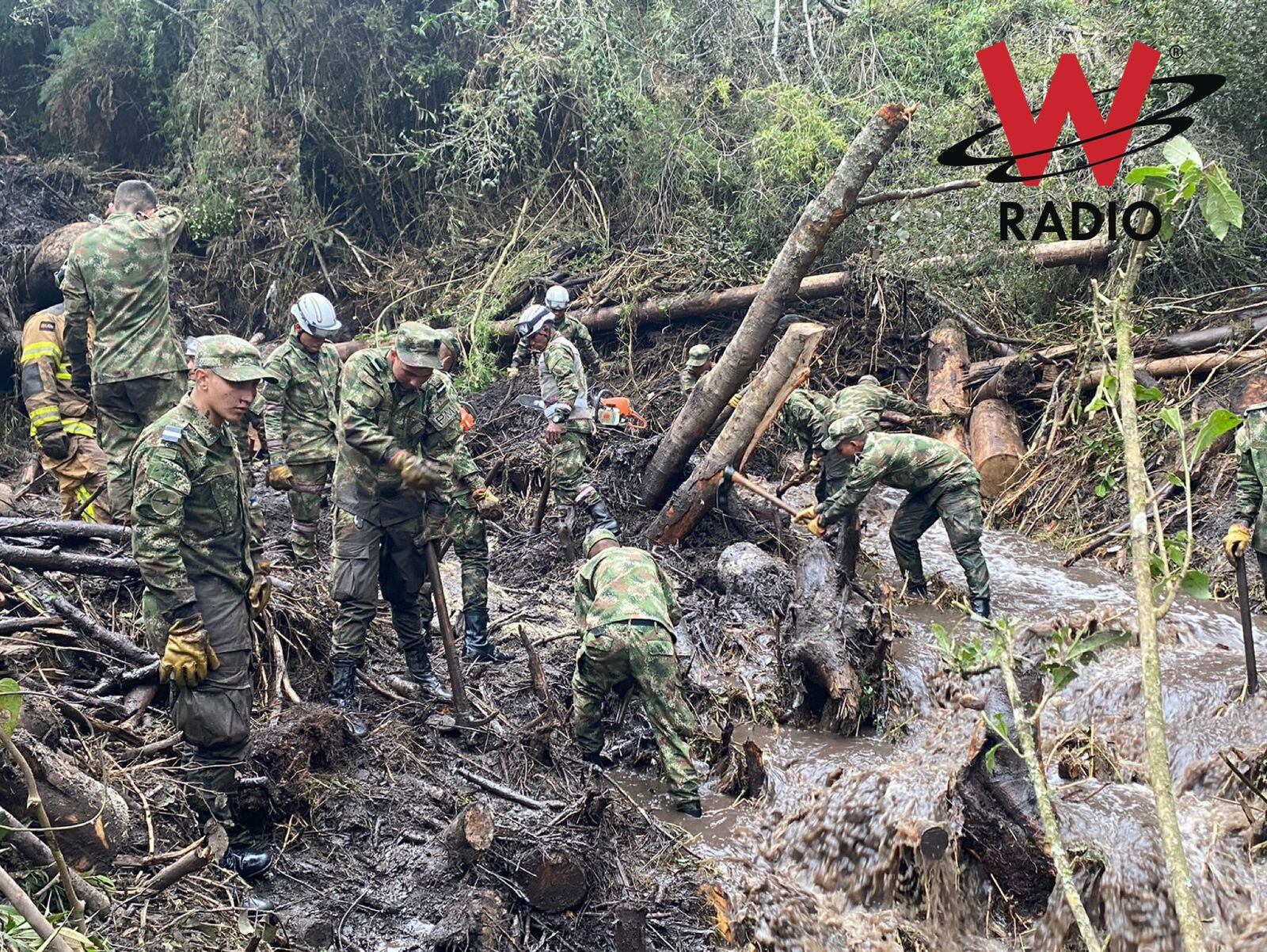 La W acompaña al pelotón de la brigada de Atención y Desastres del Ejército que realizan remoción de escombros y búsqueda de una persona que estaría desaparecida.