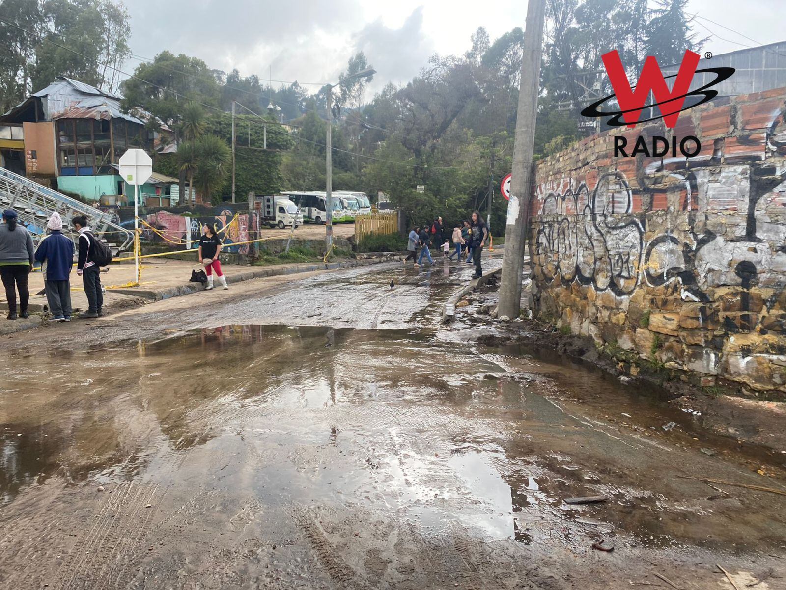 Autoridades continúan atendiendo la emergencia en La Calera por las fuertes lluvias que han generado inundaciones en varias partes de Bogotá debido al desbordamiento de una quebrada.