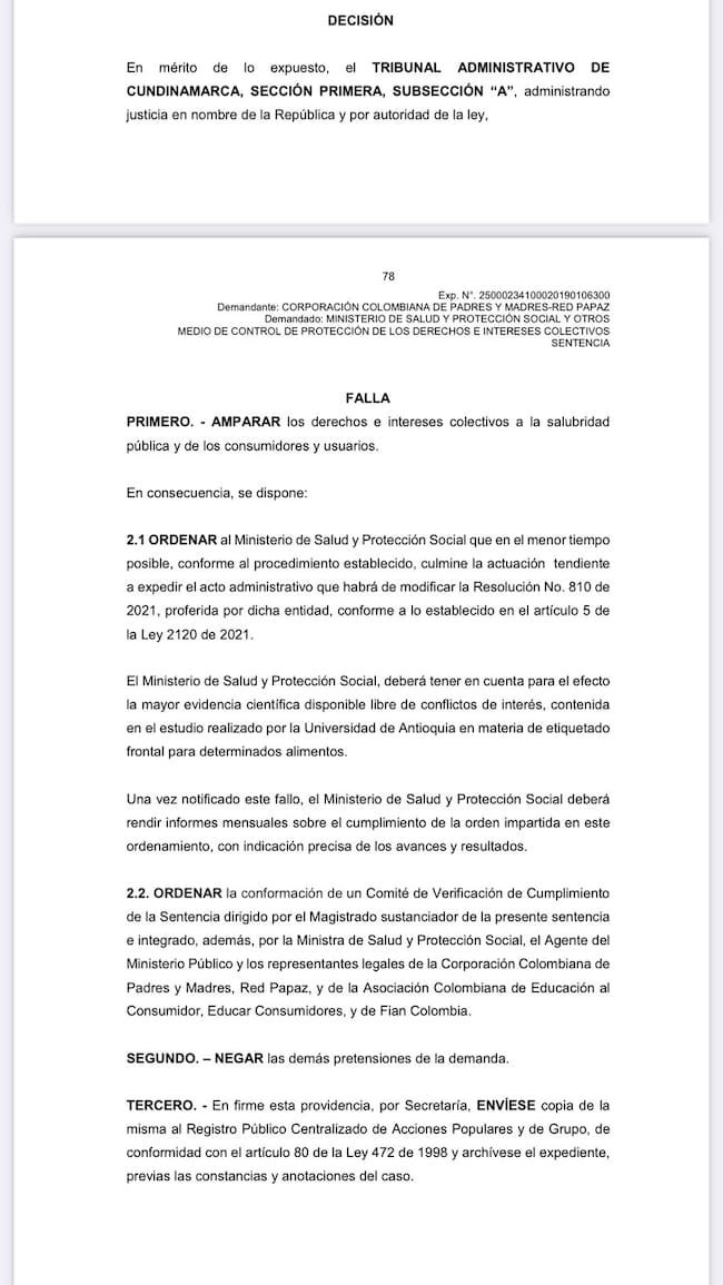 La W conoció en primicia que el tribunal administrativo de Cundinamarca ordenó al Ministerio de Salud modificar la resolución sobre etiquetado frontal. Los alimentos ultra procesados deberán tener una advertencia octagonal de color negro y con la palabra exceso.