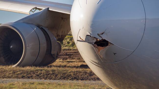 Tras la colisión, también puede observarse una zona del avión gravemente afectada.